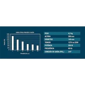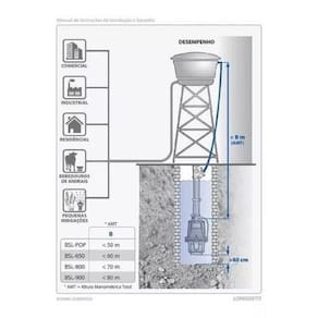Bomba Submersa Bsl-Pop 220v Lorenzetti Aplicações - Abastecimento doméstico - Jardinagem e pequenas irrigações - Transferência de água limpa de poços, cisternas e reservatórios subterrâneos Vazão máxima: 1400 l/h Pressão máxima: 50 m.C.A. Condições de Operação - Diâmetro do poço: superior a 7 (pol.) - Temperatura máxima de água: 35ºC - Submersão máxima: 20 metros Parafusos em aço inox Corpo em alumínio