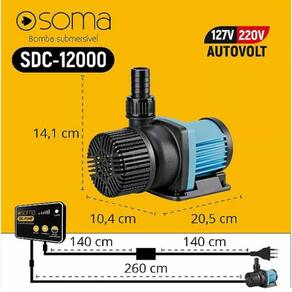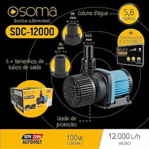 -dimensão da bomba: 104C x 205L x 141A mm -litragem: 12.000 litros/hora -consumo baixo: 100 watts -possui regulador de vazão da água eletronicamente via controlador -coluna recalque : 5,8 m -silenciosa -tensão: autovolt 100-240V/50-60Hz - Output: DC 24V -bicos de conexão para mangueira: 25mm, 32mm e 37mm Marca: Não Informado Ean: 7899901121081