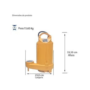 Residencial; Acompanha bóia elétrica: Não Acompanha válvula de retenção: Não Altura: 33,5 cm Altura manométrica total: 16,7 mca Ambiente Principal: Jardim e Varanda Composição: Carcaça, camisa e grade em ferro fundido GG-20. Rotor em ferro fundido GG-20. Anéis de vedação em Buna N. Selo mecânico: Faces em grafite e cerâmica. Mola em inox 304 e elastômero (borracha) em Buna N. Comprimento: 25 cm Conexão de entrada/saída: Bocal com rosca BSP 2" Ergonômico: Não Funcionamento: Elétrica Itens Inclusos: 1 Bomba Submersivel Largura: 25 cm Manual de Montagem e Instalação: https://product-hub-prd.madeiramadeira.com.br/902746414/documents/1087ceaa-7687-4456-997a-8c1b10657ca63050299578317515730833881.pdf Marca: EBARA Material Principal: Ferro Fundido Modelo: TSBD-300N 1CV Necessita Montagem: Não Origem do Produto: Nacional Peso: 15,6 kg Potência do motor: 1 HP Profundidade de sucção: 16,7 m Recomendações de Uso, Manutenção e Limpeza: Verifique nosso Manual de Manutenção Temperatura Máxima da Água: 40 °C Tipo de Água: Água Limpa / Bruta / Efluentes Tipo de bomba de água: Submersível Vazão máxima: 17.800 L/h Voltagem: 220V