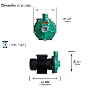 Motobomba Centrífuga Monoestágio - Monobloco - Motor Monofásico 60Hz 3500rpm - Bocais com rosca BSP, Sucção 1.1/2"" x Recalque 1".