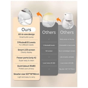 O design elegante e exclusivo permite que a bomba tira leite sem fio tenha menos peças do que outras bombas tira leite elétricas, sem etapas tediosas, tornando a montagem e a limpeza muito mais fáceis. E todas as peças são de qualidade alimentar, tão saudáveis e seguras quanto o leite materno para o bebe.
