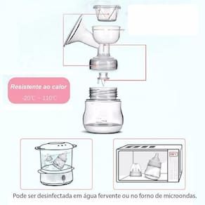 bomba tira leite elétrica com design integrado de garrafa de leite, com tela led para exibir o modo, tempo, nível de sucção e capacidade da bateria, mais simples de operar. A bomba tira leite suporta 2 modos modo de massagem/modo de sucção e cada modo tem 9 níveis de sucção ajustáveis. O motor da bomba pode memorizar o nível de sucção quando foi utilizado pela última vez. Adota o design anti-refluxo e um sistema de vedação, a bomba tira leite elétrica pode evitar que o leite materno seja contaminado e vaze. Com uma garrafa de leite de 180 ml para armazenamento conveniente do leite materno. O protetor mamário é feito de material de silicone macio, que não causa dor e mantém uma boa vedação. Cada parte da bomba tira leite pode ser destacada para uma limpeza mais conveniente. Bateria de lítio recarregável embutida, longo tempo de trabalho e pode ser carregada por cabo usb rapidamente. O som da bomba tira leite é muito baixo durante o trabalho, o que não perturbará seu bebê dormindo