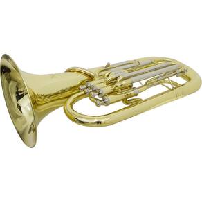 Bombardino Euphonium de 4 Chaves EP 340 Laqueado Dourado com Case New York O Bombardino de 4 Pistos Euphonium New York é uma excelente opção para quem busca por um som potente em um instrumento de qualidade, com afinação em bb, possui detalhes cromados e pisto em Cupronickel, uma liga metálica de cobre e níquel, com até 30% de níquel que oferece uma boa resistência a corrosão e a fadiga.