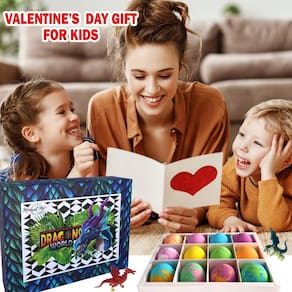 - 12 bombas de banho coloridas para crianças com brinquedos de ovo de dragão. Seu filho vai adorar a água colorida e perfumada, a espuma borbulhante e os fofinhos dragões-bebê surpresa que há dentro.