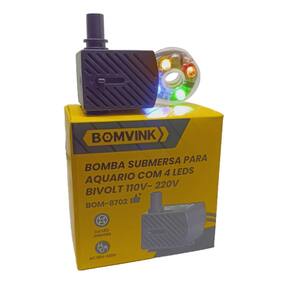 Bombinha Para Aquário fontes e bebedouros de pet 4w 160L/h Transforme seu aquário em um ambiente saudável e iluminado com a Bomba Submersa BOMVINIK MODELO 8702 com LED COLORIDO
