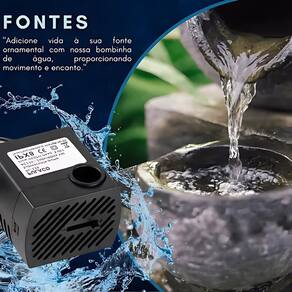 Sobre o produto: - Bomba elétrica centrífuga submersível - Própria para fontes ornamentais, aquários, bebedouros para gatos