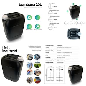 Bombona 20 litros reciclada preta com tampa lacre branca e alça incorporada - 3 peças Nesta compra você vai receber: 03 x bombonas pretas 20 litros com tampa lacre branca Importante: Este produto é fabricado com material reciclado e não é indicado para o envase de alimentos ou líquidos para consumo humano. A bombona de 20 litros reciclada preta da nastripack é a escolha inteligente para quem busca economia, durabilidade e consciência ambiental, agora com todas as informações técnicas que você precisa. Fabricada com plástico reciclado pead de alta qualidade, esta bombona oferece uma solução robusta e versátil para suas necessidades de armazenamento e transporte. Com sua cor preta, a bombona garante maior proteção contra a luz para conteúdos sensíveis, além de um visual discreto e para diversos ambientes industriais e comerciais. O bocal de rosca 63mm - autolacrável com disco vedante assegura um fechamento firme e à prova de vazamentos, protegendo o conteúdo e facilitando o manuseio e o reuso. Características principais: Capacidade: 20 litros, ideal para uso doméstico, industrial e comercial. Cor preta: protege o conteúdo contra a luz, ideal para líquidos sensíveis. Material reciclado resistente: alta durabilidade e resistência a impactos. Tampa com fechamento seguro, evitando vazamentos e contaminação. Design prático e fácil de transportar. Capacidade e dimensões: Capacidade volumétrica nominal: 20 l Capacidade volumétrica total of : 21,8 l Dimensões altura. X largura. X comprimento : 388 x 240 x287 mm Gramatura utilizada: 900 grs +/- 30g É ideal para envasar e armazenar: Água para fins não potáveis jardinagem, limpeza, construção Detergentes e produtos de limpeza Lubrificantes e óleos industriais Insumos agrícolas Outros líquidos e granulados verificar compatibilidade Vantagens da bombona 20 litros reciclada preta nastripack: Econômica: ótimo custo-benefício. Sustentável: reduz o impacto ambiental. Resistente: feita para durar e suportar o uso diário, com gramatura de 1000g. Vedação superior: bocal com rosca autolacrável e disco vedante. Versátil: ideal para diversas aplicações não alimentícias. Versatilidade de aplicações: o que a bombona 20 litros pode envasar A bombona 20 litros reciclada preta da nastripack é uma solução excepcionalmente versátil para diversos segmentos. Suas principais aplicações incluem: Indústria de limpeza e higiene: ideal para concentrados de detergentes industriais, desinfetantes de uso geral, amaciantes, sabão líquido para lavanderias profissionais, produtos para limpeza automotiva e saneantes para grandes ambientes. Setor industrial: armazenamento e transporte de óleos lubrificantes, fluidos hidráulicos, aditivos para máquinas, ceras, colas compatíveis com pead , emulsões e outros insumos não alimentícios. Agricultura e jardinagem: perfeita para fertilizantes líquidos solúveis em água, verificar compatibilidade , com as devidas precauções de segurança , e água para irrigação de pequenos cultivos ou canteiros. Construção civil: transporte de água para misturas de argamassa, aditivos para cimento, ou para a lavagem de ferramentas e equipamentos no canteiro de obras. Uso geral e coleta: excelente para coletar e transportar água da chuva, óleos cozinha ou motor , resíduos líquidos não perigosos para descarte adequado, ou como recipiente para armazenamento de ferramentas e pequenos objetos. Importante: Este produto é fabricado com material reciclado e não é indicado para o envase de alimentos ou líquidos para consumo humano. Trata-se de um produto plástico, sendo essencial transportar e armazenar em local fresco e ventilado, longe de calor, poeira e raios solares para garantir sua durabilidade e integridade. Invista na bombona 20 litros reciclada preta da nastripack e combine praticidade, economia e respeito ao meio ambiente em um só produto Bombona preta,bombona nastripack,bombona preta nastripack,bombona preta 20l.