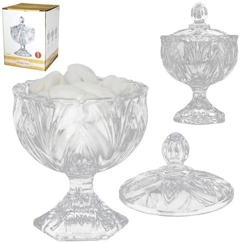 Informações adicionais: Ean: 7899790942576 Validade: indeterminada Tamanho aproximado da bomboniere: 14x9,5cm de Tamanho aproximado da embalagem: a:13xl:10xp:10cm Peso aproximado: 420g Tipo de produto: bomboniere com tampa cande cans Cor: transparente Composição: vidro Marca: Não Informado Ean: 7899790942576
