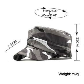 Material: algodão Tamanho: chapéu com 11 cm de profundidade, aba 5,5 cm, adequado para circunferência da cabeça de 54 a 60 cm Peso: 110 g Embalagem: 1 boné de beisebol • Estilo militar de camuflagem Projetado com formato plano e padrão de camuflagem, oferecendo uma aparência robusta ao ar livre, adequada para caminhadas, viagens e roupas casuais diárias. • Tecido de algodão macio feito de algodão respirável que oferece conforto, durabilidade e ventilação para atividades ao ar livre em climas quentes • Ajuste ajustável para adultos. Adapta-se à circunferência da cabeça de 54 a 60 cm com um fecho ajustável para garantir um ajuste personalizado seguro e confortável. • Curto Proteção solar com aba A aba de 5,5 cm ajuda a bloquear a luz solar e reduzir o brilho, tornando-a ideal para esportes ao ar livre, caminhadas e acampamentos. • Leve e prática. Pesando 110 g, a tampa mantém a estrutura e permanece confortável para uso prolongado durante viagens ou aventuras ao ar livre.