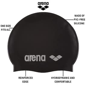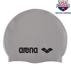 Arena Touca de natação clássica unissex de silicone macio para mulheres e homens, chapéu de natação de cabelo longo antiderrapante confortável para treinamento intensivo e corrida, prata/preto - Touca de natação hidrodinâmica e confortável com um ajuste apertado/pequeno que não perde a elasticidade ao longo do tempo, projetada para treinamento diário e natação - O molde plano oferece um ajuste estável que é suave, macio e confortável o suficiente para longas sessões de natação; tamanho único serve para a maioria - Feito de silicone sem PVC que oferece uma superfície lisa que simplifica a cabeça para reduzir o arrasto e melhorar o desempenho - A borda reforçada evita que a tampa suba, enquanto o silicone elástico oferece excelente conforto e flexibilidade - Faça sua touca de natação durar ainda mais lavando-a em água sem cloro após o uso e secando-a ao ar livre de qualquer fonte de calor ou luz solar direta
