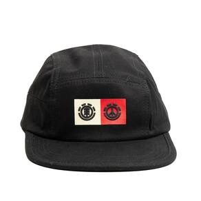 Boné Element feito em modelagem five panel com acabamento em viés, silk em relevo no painel frontal, fecho em tic-tac e etiqueta personalizada Element.