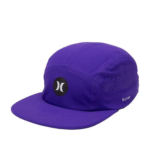 Boné Hurley feito de tecido leve com respirabilidade, estampa frontal ICON, perfuração a laser nas laterais, heat transfer lateral refletivo, regulador traseiro de fita e etiqueta bandeira ONE&ONLY.