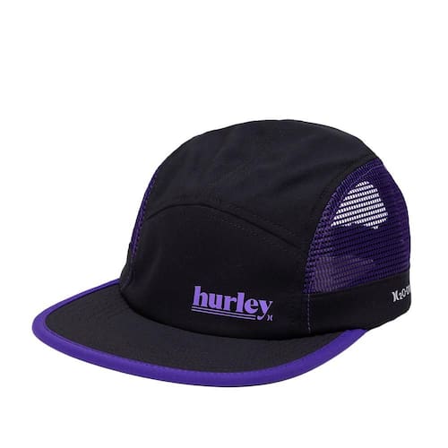 Boné Hurley feito em tecido leve com respirabilidade, estampa lateral, aba inferior contrastante, lateral com tela, heat transfer lateral refletivo, regulador traseiro de fita e etiqueta bandeira ONE&ONLY.