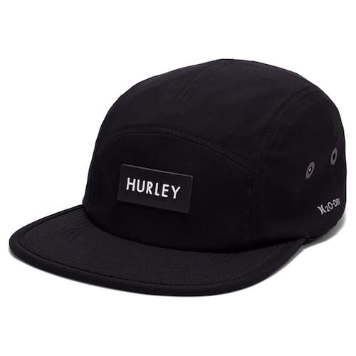 Boné Hurley H20-DRI FIVE PANEL, tecido leve com respirabilidade, aplique frontal emborrachado, heat transfer lateral refletivo, regulador traseiro e etiqueta bandeira ONE&ONLY.