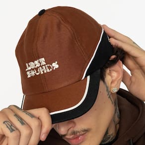 Boné Lost em sarja, aba reta, estampa Lost Sounds frontal e etiquetas personalizadas.