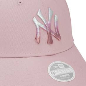 - Detalhamento: Boné de modelagem feminina na cor rosa, composto por seis gomos sendo os dois frontais estruturados, bordado frontal com logo do time da MLB "New York Yankees" em alto relevo metálido brilhante e colorido, logo da New Era bordado no mesmo estilo na lateral esquerda, aba curva flexível, fecho traseiro strapback ajustável;