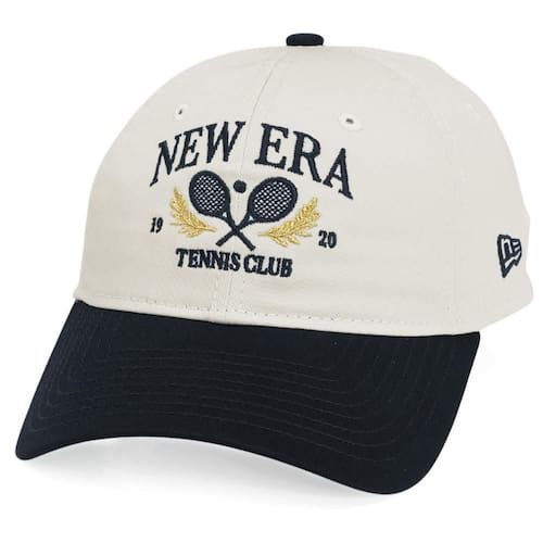 - Detalhamento: Boné confeccionado em 6 gomos não estruturados. Frente do boné com logo bordado "New Era Tennis Club" e o logo da New Era bordado na lateral esquerda. Aba curva e um fecho traseiro ajustável em Strapback;