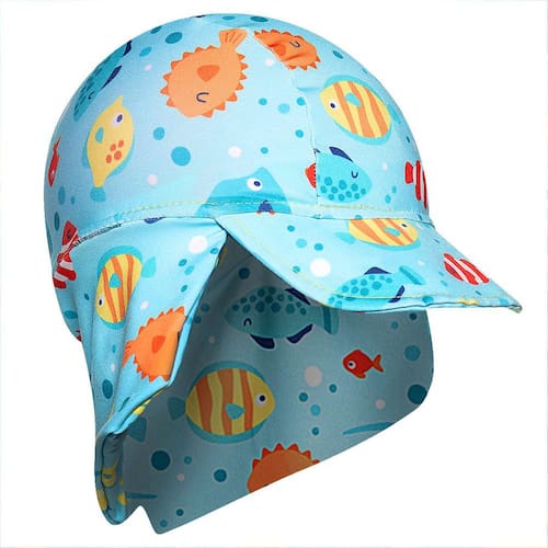O Boné de Praia Proteção UV 50+ Bebê e Infantil Peixinhos da Tip Top possui proteção de orelhas e nuca para maior proteção. É o acessório ideal para os pequenos não perderem nenhum momento das brincadeiras na praia e piscina. Possui proteção solar FPS 50+ permanente.