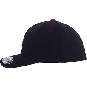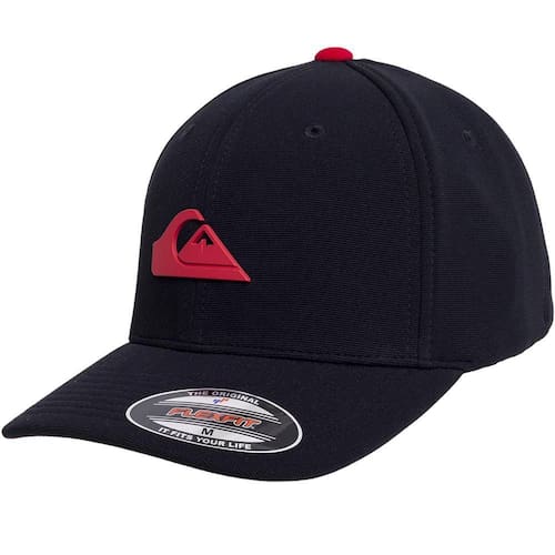 Boné Quiksilver 6pannel Flexfit, tecido flexível, faixa anti suor na circunferência interna, placa color fosco do logo centralizado no painel frontal, aba interna lisa contrastante, etiqueta localizada na barra traseira e boné fechado.