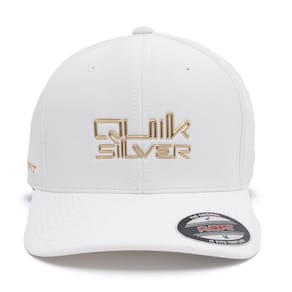 Boné QuikSilver feito em 6painel Flexfit, faixa anti suor por toda a circunferência interna, assinatura cromada soldada centralizada no painel frontal, aba interna lisa, bordado FLEXFIT aplicado ao longo da lateral direita e etiqueta localizada na barra traseira.