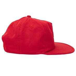 Boné QuikSilver desconstruído, aba reta em EVA com acabamento em viés do próprio tecido, patch silkado centralizado no painel frontal, etiqueta aplicada no interno e na lateral do fecho traseiro e fecho traseiro em snapback.