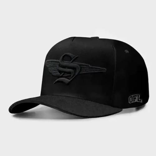 Boné Snapback iniciais Tecido: Poliester Cor : Preto Frente: Bordado com Aplique de Glitter Lateral: Bordado Traseira: Bordado Aba curva moldável Fecho SNAPBACK por pinos de pressão ajustável na parte traseira. Profundidade: entre 14 a 16cm, medindo do pino no topo do boné e seguindo pela costura até a sua base. BONÉS DE QUALIDADE PREMIUM