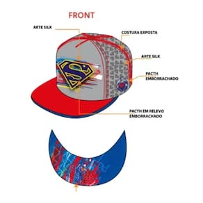 O Boné Aba Reta Superman apresenta um design exclusivo, com a logo do Superman estampada em alto relevo na parte frontal. Essa estampa em relevo adiciona um toque de destaque e textura ao boné, tornando-o ainda mais especial.