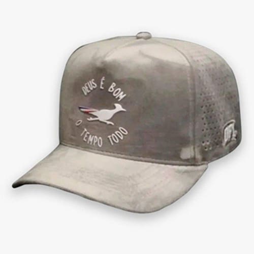 Tecido: Camurça Boné Aerofléx Parcial Frente Silk Alto relevo Lateral : Bordado Aba curva moldável Fecho SNAPBACK por pinos de pressão ajustável na parte traseira. Profundidade: 10cm, medindo do pino no topo do boné e seguindo pela costura até a sua base.