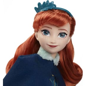 -Inspirada nas festividades, a boneca Anna usa um vestido removível com a dose perfeita de brilho e uma capa cintilante e removível com toques de acabamento fofo para a estação da neve.