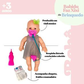 Acessórios Inclusos: A Boneca Infantil Faz Xixi Quando Bebe Água vem acompanhada de uma mamadeira, chupeta e fralda, tornando as brincadeiras ainda mais completas e realistas. Com esses acessórios, as crianças podem simular o cuidado completo com a boneca, proporcionando horas de diversão e aprendizado.