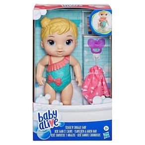 A Baby Alive Bebê Banhos Carinhosos vem pronta para entrar no banho! Ela pode entrar debaixo da água e tomar banho todo dia.