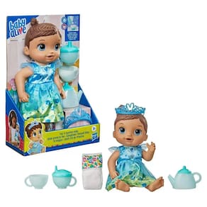 É uma festa do chá que muda de cor. Hora do chá de faz de conta com a boneca Baby Alive Bebê chá de princesa! Cada boneca Bebê chá de princesa vem com um lindo bule e 2 xícaras que mudam de cor com a água fria. As crianças podem imaginar que as suas bonecas são lindas princesas com os acessórios para boneca como um vestido de festa e uma tiara. O kit inclui também uma fralda. A boneca Baby Alive Bebê chá de princesa bebe água e faz "xixi". Como um bebê, ela precisará trocar a fralda! (Fraldas adicionais vendidas separadamente). As crianças vão adorar tomar um chá de mentirinha com a bebê.