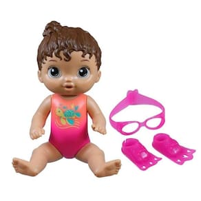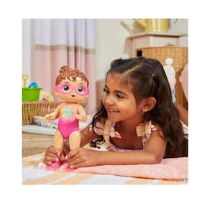 A boneca Baby Alive Sunny Swimmer está pronta para muitas aventuras aquáticas. Esta boneca pra brincar na água é perfeita para meninos e meninas. Vem com óculos e 2 nadadeiras. A boneca articulada de 25 cm vem com uma linda roupa de banho com estampas de criaturas marinhas. É uma boneca divertida feita para brincar na água. Ideal para meninos e meninas a partir dos 3 anos. Estas bonecas aquáticas Baby Alive com acessórios são excelentes presentes de fim de ano ou de aniversário para crianças