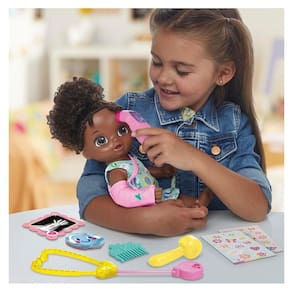 Esta adorável boneca Baby Alive vem com um kit de médico, incluindo muitos acessórios divertidos para brincar de fazer check-up. Use água gelada com o pacote de compressa de mentirinha para revelar um coração adorável na testa e no braço da boneca. A boneca de 30 cm vem com um gesso adorável que as crianças podem decorar com os adesivos. O gesso se encaixa a ambos os braços da boneca. Este conjunto de boneca também tem mais brinquedos divertidos para meninas e meninos, incluindo um estetoscópio com carinhas divertidas que mudam quando você pressiona, além de um verificador de ouvido, termômetro, chapas de raio-x e pente. Os brinquedos Baby Alive para meninas e meninos a partir dos 3 anos são ótimos presentes para crianças que adoram cuidar.
