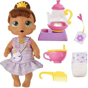 A boneca está pronta para uma mágica festa do chá com este conjunto Baby Alive Festinha do Chá Encher a chaleira com água e colocar no fogão de brinquedo para imaginar que está a fazer chá. Então, ativar o botão para a água borbulhar As crianças podem organizar sua própria festa de chá imaginária com a xícara de chá e os acessórios para saquinhos de chá incluídos. Depois de beber o chá de mentirinha, a boneca molha a fralda