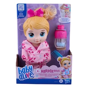 Com a Boneca Baby Alive Shampoo Loira da Hasbro as crianças irão se divertir na hora do banho com sua nova amiga. Basta inclinar o frasco para ver as bolhas de mentirinha subirem e descerem! As crianças podem brincar com o frasco com água ou shampoo infantil. A Boneca mede 28 cm é ideal para abraçar e carregar por aí e enrolar a boneca na toalha macia com fechos para encaixar. As crianças podem brincar de criar penteados com o pente e laço removível.