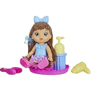 Boneca baby alive sudsy styling morena - hasbro f5113 Lindos cabelos borbulhantes: as crianças podem colocar a boneca na cadeira de salão de beleza e criar penteados com as bolhas de sabãoCadeira de salão de beleza e acessórios: esta boneca baby alive de 30 cm vem com uma cadeira de salão e acessórios como pente, ferramenta de beleza, secador de cabelo, espelho e presilhaA boneca se conecta à cadeira: as crianças a partir dos 3 anos podem misturar água e sabão no copinho, colocar na cadeira e apertar o shampoo para ver as bolhas saírem pela cabeça da bonecaDiversão criativa: as crianças podem usar os acessórios para moldar as bolhas de sabão e usar o espelho para admirar o resultado finalFunciona com shampoo de bebê ou mistura para bolhas de sabão: as crianças podem brincar várias vezes. Basta usar o shampoo de bebê ou solução de bolhas de sabão para brincar novamente. Detalhes técnicos:- número do modelo: f5113- certificação: ifbq 002515/2021- tipo s de material: plástico- cor: roxo, rosa e azul- fabricante: hasbro- dimensões do produto: 11.43 x 33.02 x 35.56 cm; 700 g- asin: b09h2c9qgl- idade recomendada: 36 meses - 6 anos- ean: 5010994126919- marca: baby alive Instruções de cuidado:Produtos e cores podem variar daqueles apresentados na embalagem.Atenção não recomendável para crianças menores de 3 anos por conter partes pequenas que podem ser engolidas.