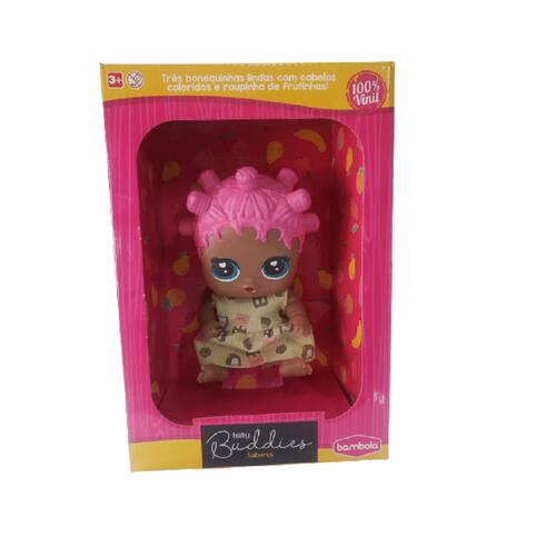 Cabelinho colorido e roupinha com estampa de frutas! A Boneca Bambola Baby Buddies Sabores Cacau é linda e divertida. Impecável, ela é fabricada em vinil atóxico, material seguro para crianças a partir de 3 anos. Cheia de estilo sua roupinha com morango estampado deixa esse "bebê" ainda mais fofo!