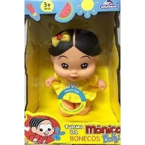 Boneca magali Produto licenciado turma da monica Boneca magali da turma da mônica baby da adijomar, é ideal para crianças acima de 3 anos. Boneca da magali com dispositivo sonoro com frases e canções, a boneca é feita toda em vinil. Detalhes do produto: Conteúdo da embalagem1 boneca magali com som Idade recomendada: acima de 3 anos Tamanho da boneca:22 cm altura Características: Dimensões da embalagem: 31 x 24 x 13,5 cm Utiliza pilhas: sim inclusas Referência do produto: 413 Marca: adjomar brinquedos Atençãonão recomendado para menores de 3 anos Certificado: Inmetro CeBri/Innac 0120201A NM 300/2002 Ocp 0061 Ean: 7897020204135