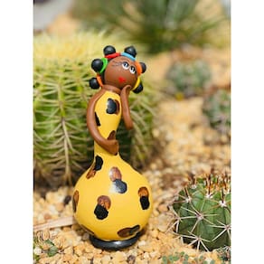 a cultura baiana é uma das mais ricas e diversificadas do nosso país, tanto em seu acervo religioso e arquitetônico, quanto na culinária e na música. Visando homenagear este povo tão amado do nosso brasil, criamos as bonecas baianinhas em cabaça. As bonecas pintadas à mão são clássicas, e com elas você nunca erra ao decorar sua cozinha ou qualquer outro cômodo da casa que queira deixar com um tom mais alegre. Altura: 17cm largura: 7cm material: cabaça ou porongas pinta a mão e biscuit
