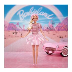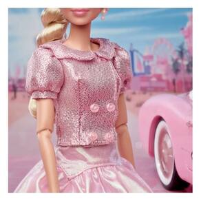 Barbie The Movie Saudações da Barbielândia. Inspirada na Margot Robbie de Barbie O Filme, esta boneca colecionável veste um conjunto de blusa e saia rosa brilhante combinando impecavelmente. Diretamente do filme, a Barbie usa este visual ao deixar a Barbielândia para o mundo real. Da boina e laço de cabelo combinando aos seus saltos rosa característicos, a Barbie sempre usa seus looks chamativos. Celebrando Barbie O Filme, esta boneca Barbie é um ótimo presente para fãs e colecionadores.