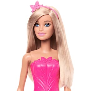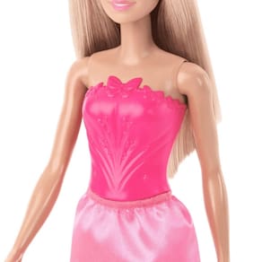 A Barbie Donzela Loira é perfeita para soltar a imaginação Com longos cabelos loiros e um vestido rosa encantador, ela inspira aventuras mágicas, histórias de princesa e muito faz de conta.