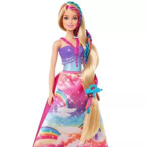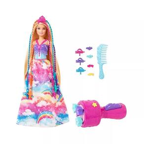 Os Jovens Estilistas Podem Criar o Visual Dos Seus Sonhos com a Boneca Barbie Dreamtopia Princesa Tranças Mágicas! Ela Tem Cabelo Extralongo de 21,5cm com Extensões Arco-Íris Que As Crianças Podem Torcer e Trançar, Além de Uma Ferramenta Que Torna a Experiência Divertida e Fácil.