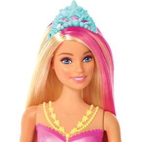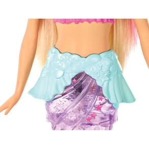 Boneca Barbie - Barbie Dreamtopia - Sereia com Luzes - Mattel Barbie Sereia Brilhante Dreamtopia traz magia à brincadeira com características divertidas que realmente criam ondas. A boneca nada e sua cauda se ilumina. Você pode ativar esse recurso apertando um botão ou mergulhando a cauda da boneca na água para iniciar um show de luzes. Sua cauda translúcida cria padrões divertidos e fantásticos. Cabelos longos e coloridos aumentam a diversão, junto com sua tiara que dá um toque de conto de fadas. Código de Barras 887961765236 Produto Certificado: 00128-01A Itens Inclusos: 01 Boneca e acessórios Recomendação: Recomendado para crianças a partir dos 3 anos. Restrição de Idade: Não recomendável para menores de 3 anos por conter peças pequenas que podem ser engolidas. Código do Fabricante: GFL82 Aviso: As cores podem variar entre as imagens mostradas acima e o produto. Imagens meramente ilustrativas. Certificado: Certificado pelos Órgãos Autorizados - OCP´S (Organismos de Certificação de Produtos) Composição / Material: Plástico Peso: 350 Gramas Dimensões (AxLxC): Aproximadamente 35 x 20 x 15Cm - (alt-Comp-Larg)