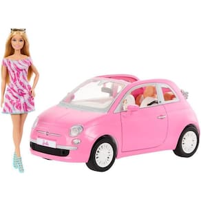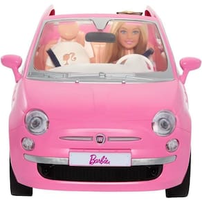 A melhor viagem de carro da sua vida está prestes a começar com a boneca Barbie e seu chique carro Fiat 500 Pronta para a aventura, a boneca Barbie está usando um vestido versátil com saltos altos, óculos de sol esportivos e pulseira. Seu conversível de quatro lugares, de inspiração italiana, tem portas que funcionam, rodas que rolam e um interior branco descolado. Para começar a brincadeira, vamos colocar a Barbie no assento do motorista, apertar o cinto de segurança e levar a aventura para onde a imaginação levar A boneca não pode ficar em pé ou dirigir sozinha. As cores e as decorações podem variar.
