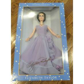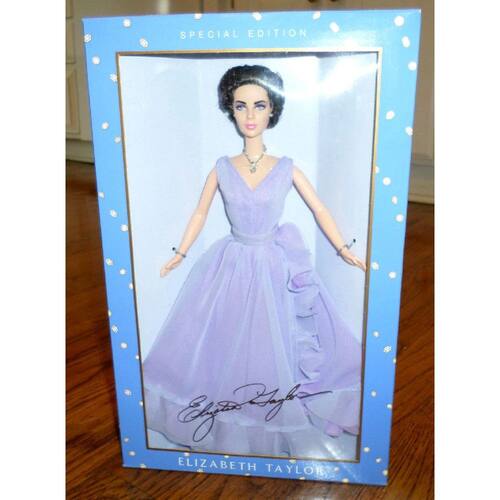 A boneca Elizabeth Taylor é deslumbrante em um vestido violeta semitransparente de chiffon sem mangas, ajustado através do corpete com uma saia longa que é acentuada com bordas com babados. Os tons de roxo complementam perfeitamente os olhos violeta luminosos de Taylor. Este vestido muito sofisticado é complementado por joias deslumbrantes, com um verdadeiro colar de cristal Swarovski. As características distintamente bonitas de Elizabeth Taylor são capturadas com precisão com grande clareza e detalhes na escultura da boneca. - Edição: Timeless Treasuresâ" - Coleção: Coleção Elizabeth Taylor - Escultura facial: Elizabeth Taylor - Barbie - Mattel #28076