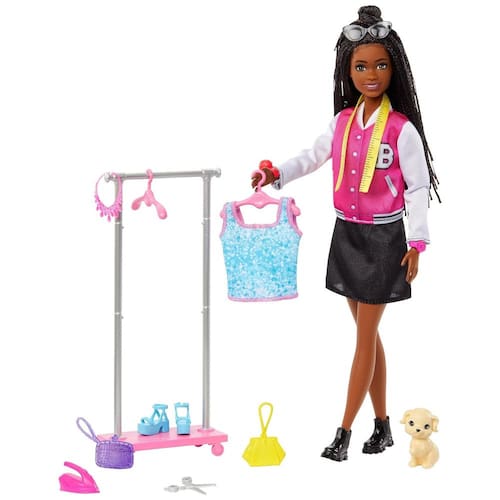 Este playset de boneca e acessórios Barbie apresenta um tema de estilista no set de Barbie e Barbie On Set e inspira as crianças a escrever seus próprios scripts para diversão na hora de brincar A boneca Barbie Brooklyn está cuidando do guarda roupa com 14 peças temáticas que incluem um cachorrinho, cabideiro e itens para contar histórias como top, sapatos, 2 bolsas e fita métrica Algumas das peças têm alças que cabem nas mãos da boneca para mergulhar a imaginação na diversão de dramatizações e histórias Use o rack e os cabides para pendurar as roupas e inventar looks A boneca Barbie Brooklyn usa seu cabelo preto em um coque parcial com tranças e tem um visual moderno com jaqueta do time do colégio Com muita inspiração criativa, este playset no set é um ótimo presente para crianças de 3 anos ou mais, especialmente aquelas que adoram estilo e diversão na moda