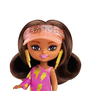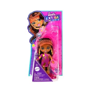Barbie Extra minibonecas em grande estilo Estas bonecas surpreendem com todos os looks arrojados e modernos que conhecemos e amamos da Barbie Extra, mas foram reduzidas para 8 cm de puro estilo. Os tamanhos pequenos tornam estas bonecas majestosamente adoráveis Além disso, os penteados que se destacam, as roupas divertidas e os suportes de boneca incluídos tornam essas bonecas perfeitas, ainda que ultrapequenas, para grandes exibições. A Barbie Extra Mini Minis é uma boneca pequena de 8 cm, que tem um estilo fantástico e um penteado radical. Esta Barbie Extra Mini Minis tm tem cabelo castanho longo com mechas lavanda e usa um vestido de moletom com estampa de alienígena para um look totalmente de outro mundo Quatro acessórios chegam com um toque superdescolado: um gorro da paz, brincos grandes com símbolo da paz, pochete néon e botas cor-de-rosa brilhantes.