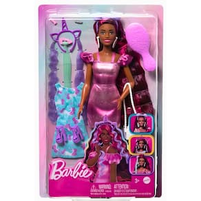 A coleção Barbie Totally Hair conta com bonecas divertidas que modelam penteados descolados junto de visuais em color blocking! Cada boneca tem 21 cm de cabelo arco-íris para brincar e inclui 11 acessórios de moda e estilização. As crianças vão adorar criar diferentes penteados e explorar diferentes possibilidade de combinações de roupas! Vendidos separadamente, sujeitos a disponibilidade. As bonecas não ficam em pé sozinhas. As cores e as decorações podem variar.