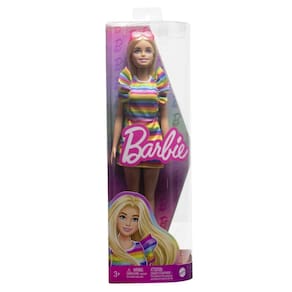 Barbie Boneca Fashionistas #197 com cabelo loiro e suspensórios usando vestido arco-íris e acessórios, incluindo sapatos plataforma e óculos de sol - Projetada para refletir o mundo que as crianças veem hoje, esta linha diversificada de fashionistas da Barbie apresenta estilos brilhantes e modernos que criam infinitas possibilidades de contar histórias. Conheça a primeira boneca Barbie Fashionistas com aparelhos! Com um lindo sorriso, óculos de sol margarida rosa e salto plataforma amarelo, seu visual apresenta muitos detalhes que fazem sua personalidade se destacar. Marca: Não Informado